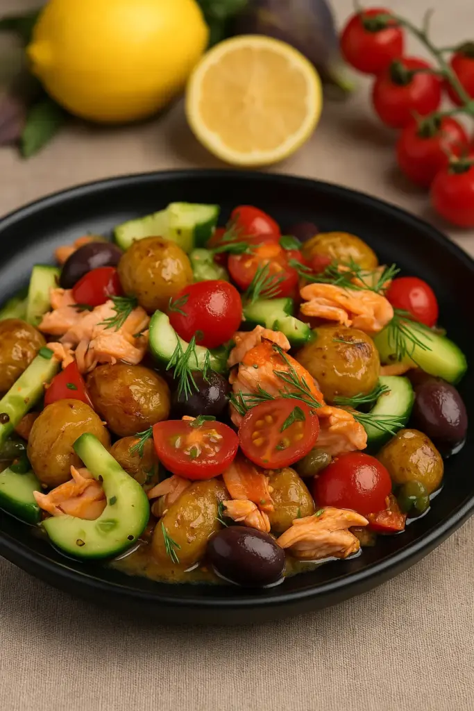 - Salmon Salad: Canned or grilled salmon mixed into a salad of greens, cucumber, radishes, and a boiled egg. Dress with olive oil, lemon, and dill. Serve with whole-grain crackers.