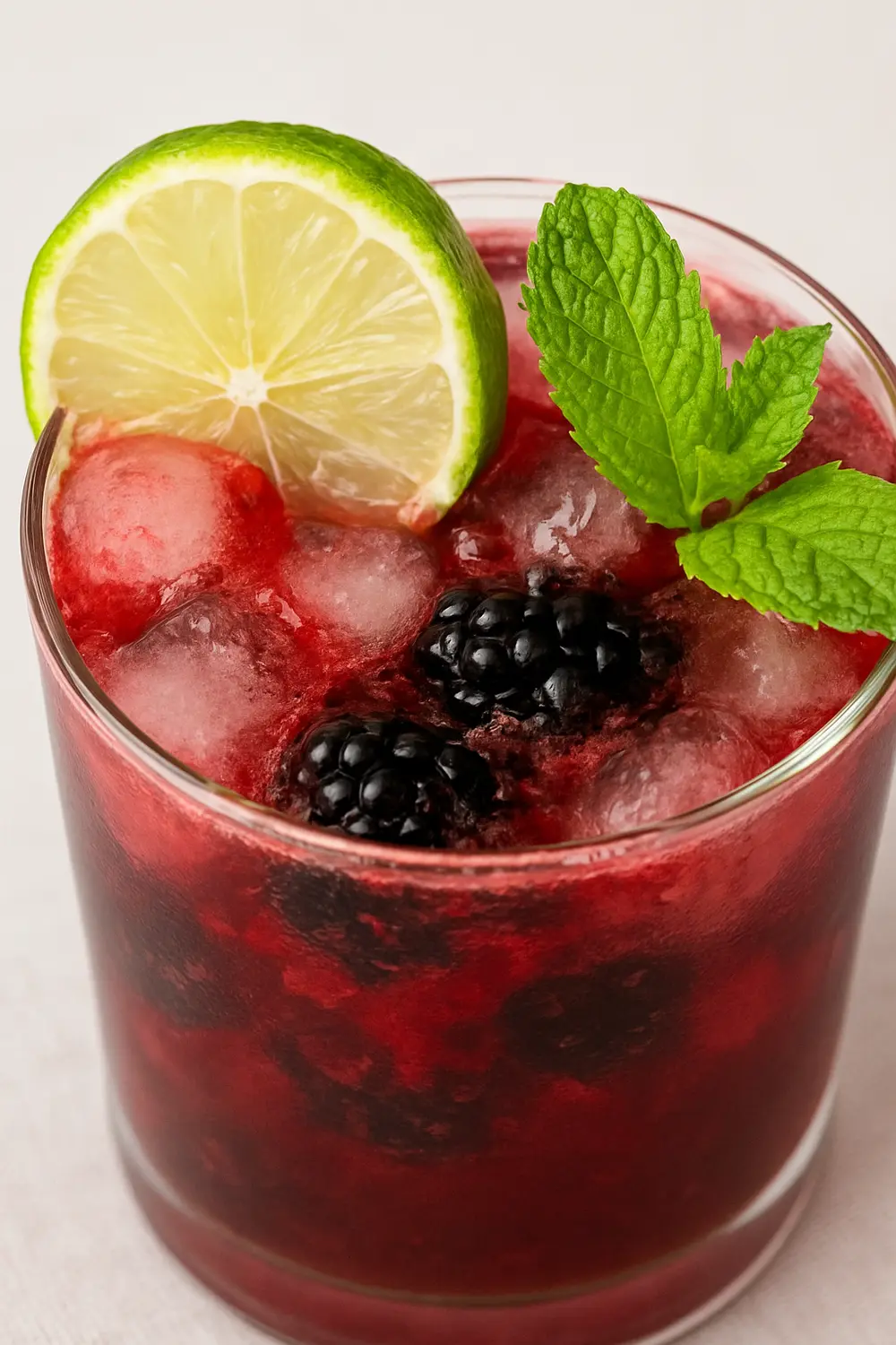 - Finish each glass with a lime wedge for squeezing, a sprig of fresh mint, and extra blackberries or a lime wheel for flair.