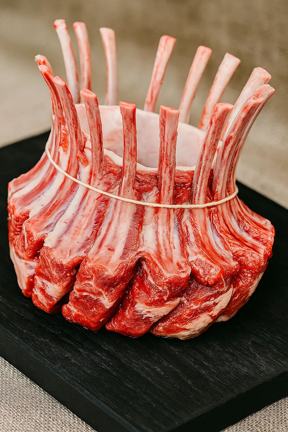 This easy crown roast of lamb recipe serves eight and features tender, herb-crusted lamb rib chops shaped into a stunning crown, roasted until golden and juicy.